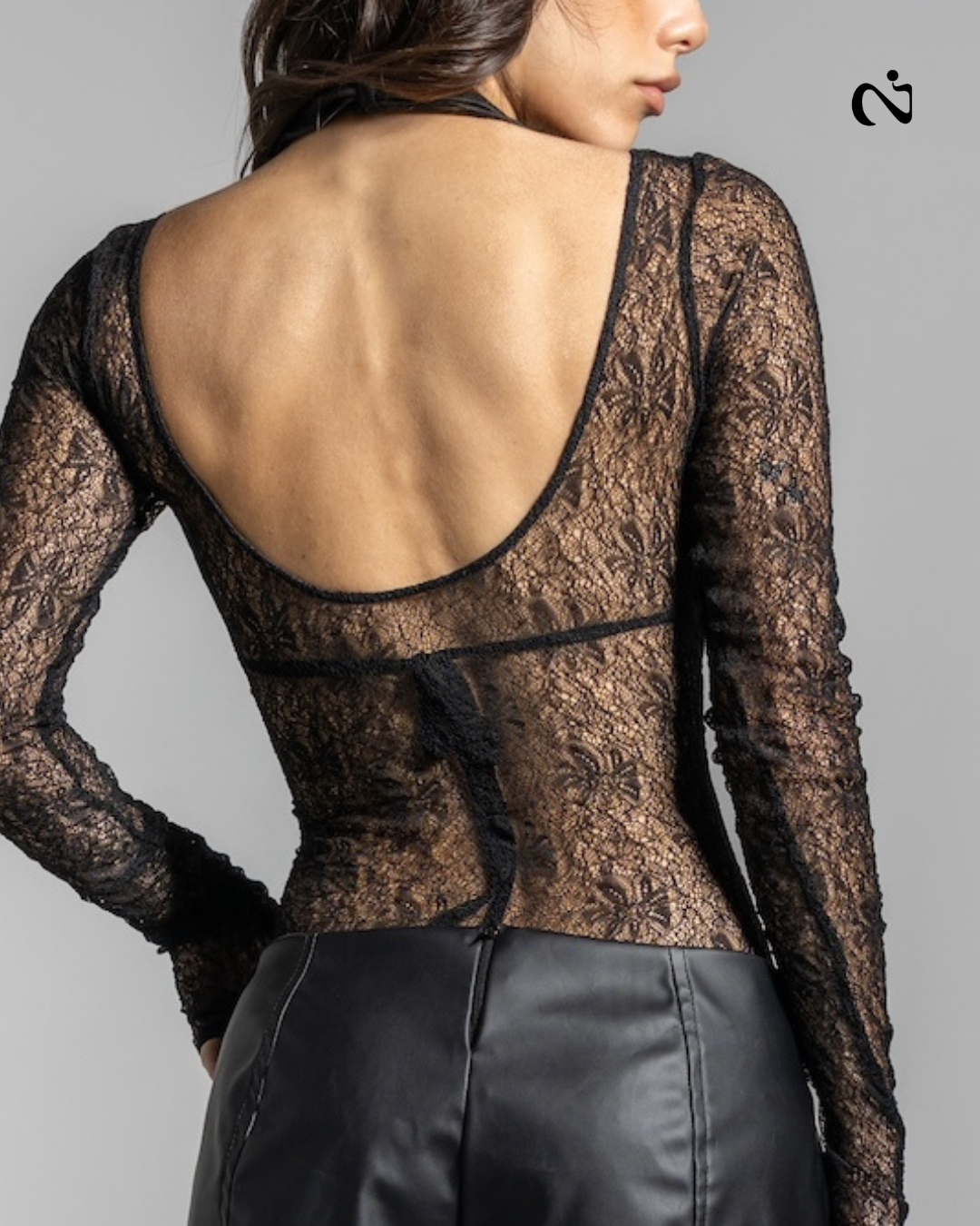 Este body es la combinación perfecta entre elegancia y actitud. Confeccionado en microtul con detalles que le dan un brillo sutil, tiene espalda baja para un toque sexy y sofisticado. Su diseño incluye broches en la entrepierna para mayor comodidad. Ideal para usar con jeans, faldas o debajo de blazers. Disponible en talles S, M y L.